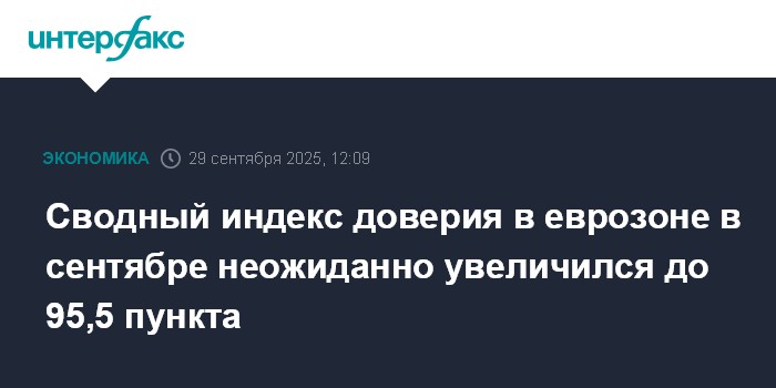 Сводный индекс доверия в еврозоне в сентябре неожиданно увеличился до 95,5 пункта