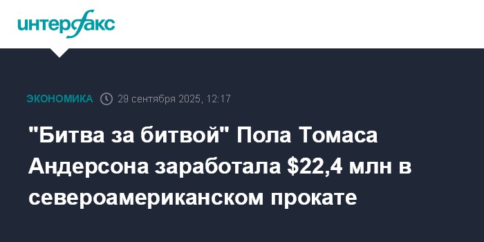 Москва. 29 сентября. INTERFAX.RU - Картина "Битва за битвой" (One Battle After Another) режиссера Пола Томаса Андерсона с участием Леонардо ДиКаприо и Шона Пенна стала лидером североамериканского проката в минувшие выходные, заработав $22,4 млн в дебютный уикенд.