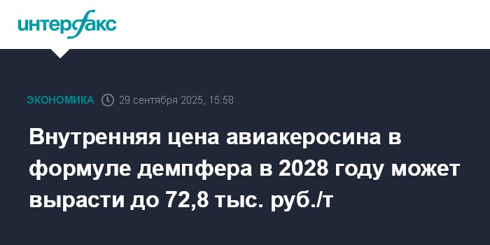 Внутренняя цена авиакеросина в формуле демпфера в 2028 году может вырасти до 72,8 тыс. руб./т