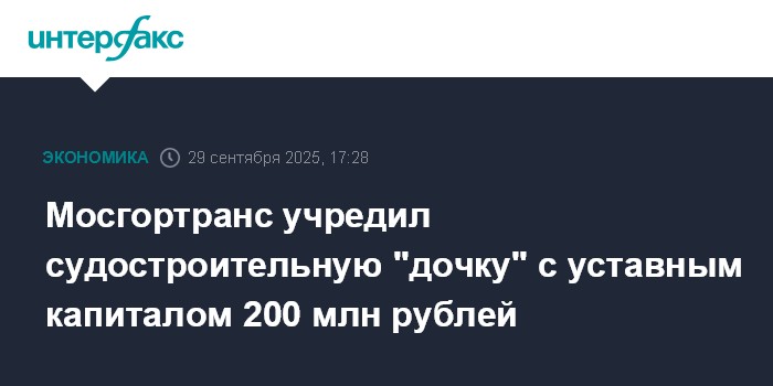 Мосгортранс учредил судостроительную "дочку" с уставным капиталом 200 млн рублей