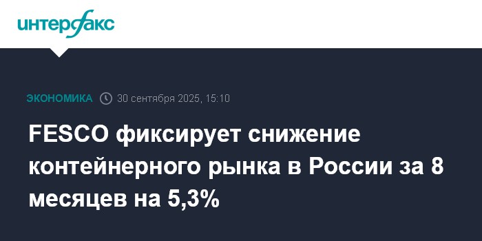 Москва. 30 сентября. INTERFAX.RU - Российский контейнерный рынок в январе-августе 2025 года сократился на 5,3% в годовом исчислении, до 4,208 млн TEU, подсчитали аналитики транспортной группы FESCO (головная компания - ПАО "Дальневосточное морское пароходство", ДВМП).