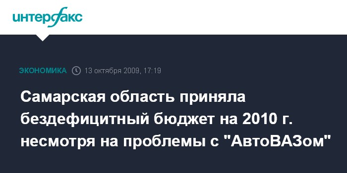 Самарская область приняла бездефицитный бюджет на 2010 г. несмотря на проблемы с "АвтоВАЗом"