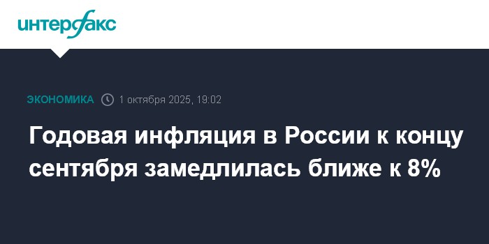 Годовая инфляция в России к концу сентября замедлилась ближе к 8%
