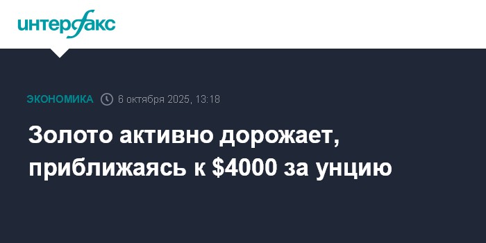Золото активно дорожает, приближаясь к $4000 за унцию