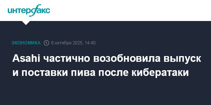 Asahi неделей ранее приостановила поставки некоторых напитков после того, как кибератака нарушила работу ее системы приема и доставки заказов. Компания также заморозила производство на большинстве из 30 своих заводов в Японии, прием и доставку заказов японских дочерних предприятий и работу колл-центров, в том числе линий обслуживания потребителей.