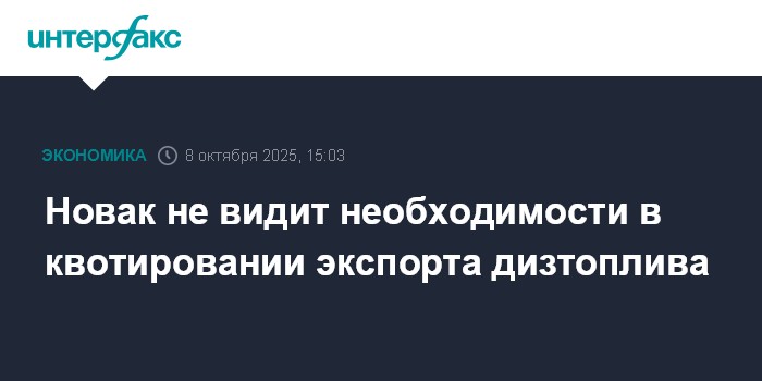 "Нет, сейчас это не требуется", - сказал Новак, отвечая вопрос о возможности введения квот на экспорт ДТ.