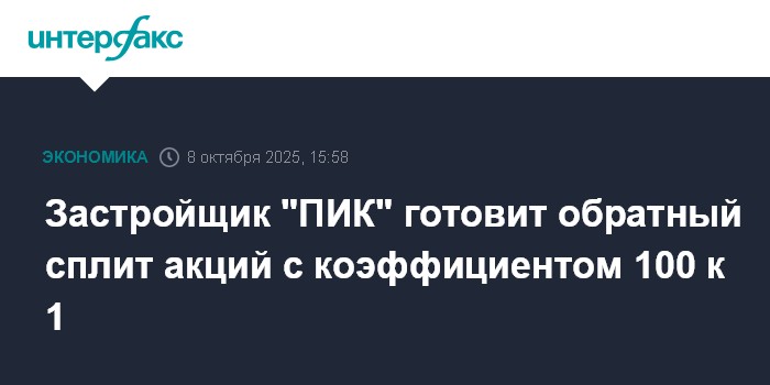 Застройщик "ПИК" готовит обратный сплит акций с коэффициентом 100 к 1