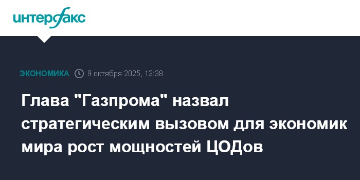 Москва. 9 октября. INTERFAX.RU - Гонка наращивания мощностей ЦОДов и способности удовлетворить их потребности в энергии становятся стратегическим вызовом для мировых экономик, заявил на пленарной сессии Петербургского международного газового форума (ПМГФ-2025) глава "Газпрома" Алексей Миллер.