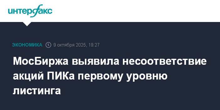 Москва. 9 октября. INTERFAX.RU - Московская биржа выявила несоответствие обыкновенных акций ПАО "ПИК СЗ" требованиям к корпоративному управлению для бумаг, включенных в первый уровень листинга.