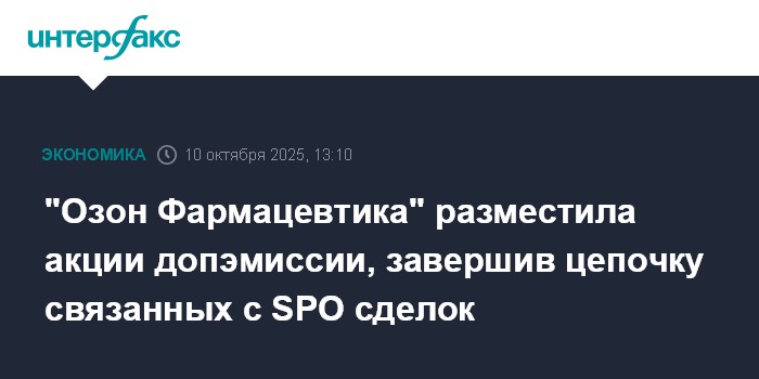 "Озон Фармацевтика" разместила акции допэмиссии, завершив цепочку связанных с SPO сделок