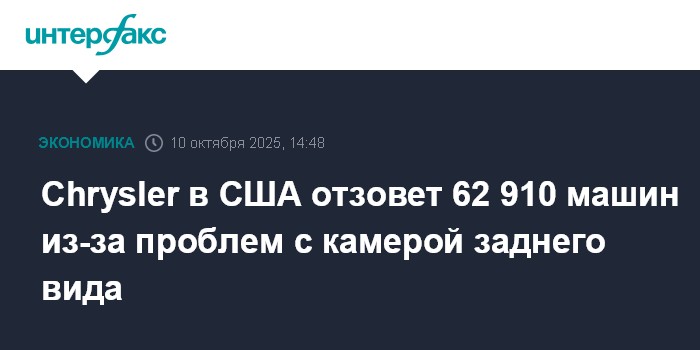 Москва. 10 октября. INTERFAX.RU -Chrysler, который входит в группу Stellantis, отзывает 62,91 тысячи автомобилей в США из-за проблем с камерой заднего вида, сообщило Национальное управление по безопасности дорожного движения (NHTSA).