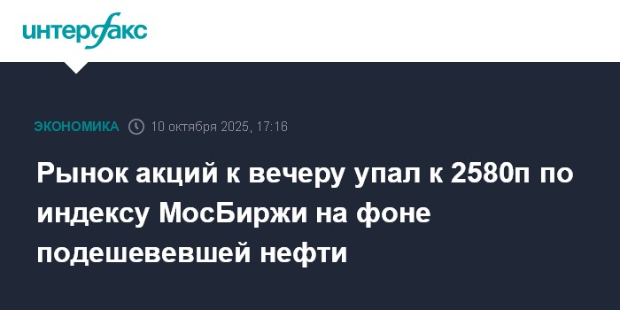 Рынок акций к вечеру упал к 2580п по индексу МосБиржи на фоне подешевевшей нефти