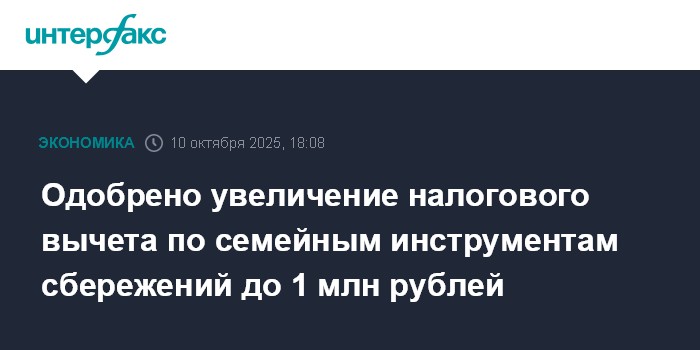 Одобрено увеличение налогового вычета по семейным инструментам сбережений до 1 млн рублей