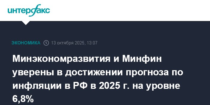 Минэкономразвития и Минфин уверены в достижении прогноза по инфляции в РФ в 2025 г. на уровне 6,8%