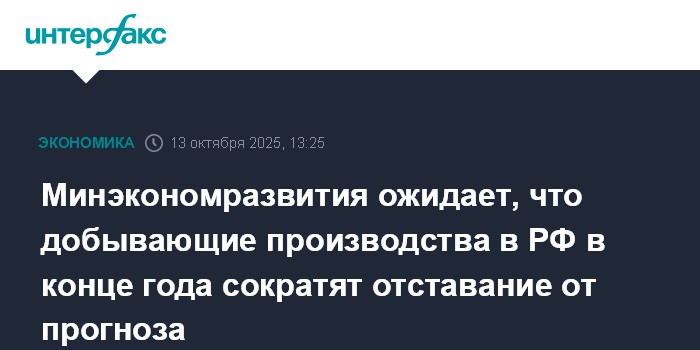 Минэкономразвития ожидает, что добывающие производства в РФ в конце года сократят отставание от прогноза