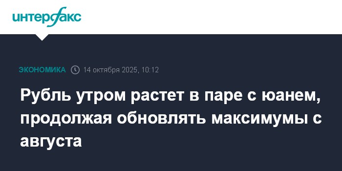 Москва. 14 октября. INTERFAX.RU - Китайский юань снижается на Московской бирже утром во вторник; рубль растет, продолжая обновлять максимальные отметки с августа.