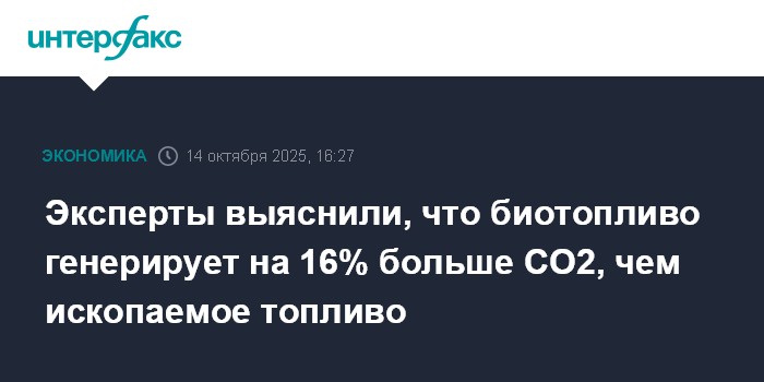 Москва. 14 октября. INTERFAX.RU - Выбросы диоксида углерода (СО2) от мирового производства биотоплива на 16% больше, чем от использования заменяемого им ископаемого топлива. К такому выводу пришли эксперты консалтинговой компании Cerulogy в своем исследовании для группы Transport and Environment.