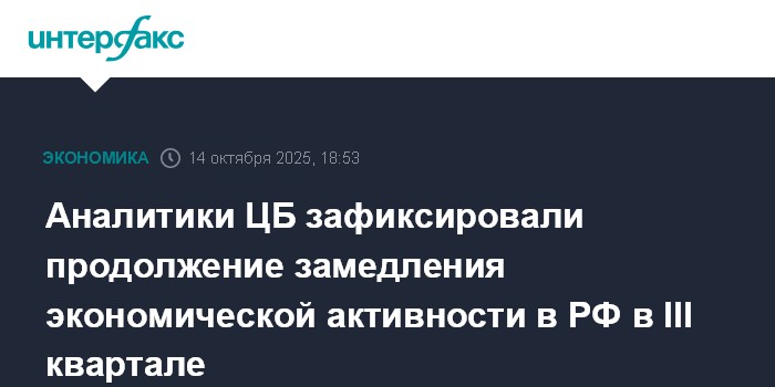 Аналитики ЦБ зафиксировали продолжение замедления экономической активности в РФ в III квартале
