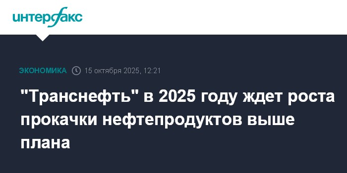Москва. 15 октября. INTERFAX.RU - Транспорт нефтепродуктов по системе "Транснефти" в 2025 году будет выше плана, сообщил журналистам вице-президент компании Сергей Андронов.