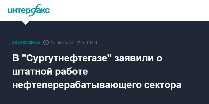 Москва. 15 октября. INTERFAX.RU - Нефтеперерабатывающий сектор "Сургутнефтегаза" действует в штатном режиме, сообщил журналистам заместитель генерального директора ПАО "Сургутнефтегаз" Николай Киселев.