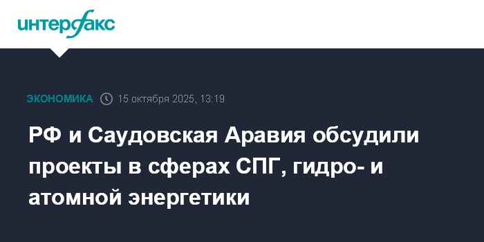 РФ и Саудовская Аравия обсудили проекты в сферах СПГ, гидро- и атомной энергетики