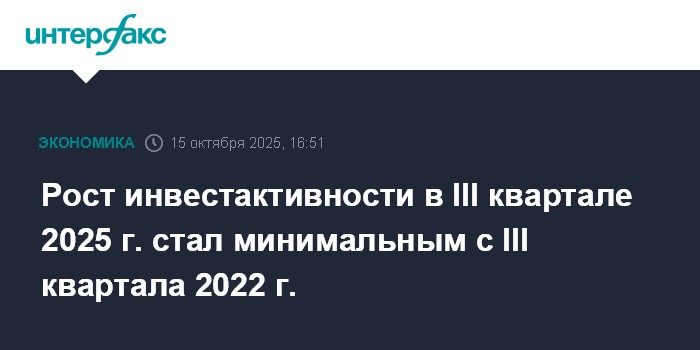 Рост инвестактивности в III квартале 2025 г. стал минимальным с III квартала 2022 г.