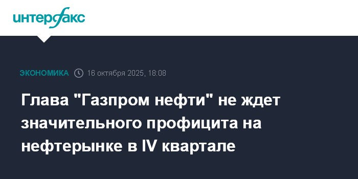 Москва. 16 октября. INTERFAX.RU -Профицит на нефтяном рынке, который прочат в четвертом квартале некоторые аналитики, если и будет, то незначительный, считает глава "Газпром нефти" Александр Дюков.