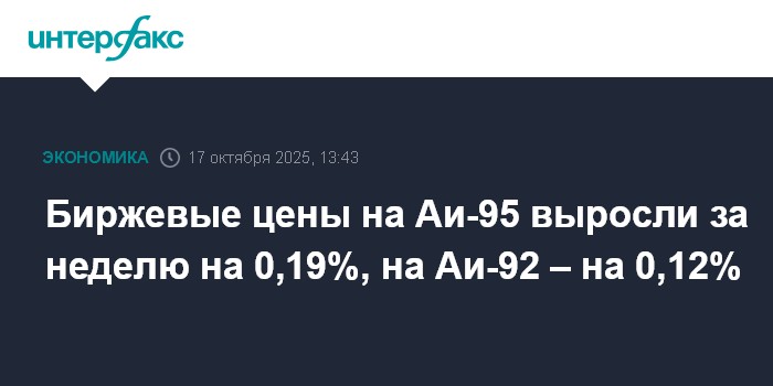 Биржевые цены на Аи-95 выросли за неделю на 0,19%, на Аи-92 – на 0,12%
