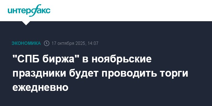 "СПБ биржа" в ноябрьские праздники будет проводить торги ежедневно
