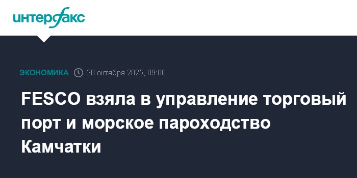 Москва. 20 октября. INTERFAX.RU - Транспортная группа FESCO получила в управление ООО "Петропавловск-Камчатский морской торговый порт" и ООО "Камчатское морское пароходство" (KASCO), обращенные в доход РФ в июне, сообщается в ЕГРЮЛ.
