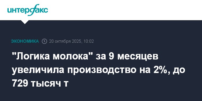 Москва. 20 октября. INTERFAX.RU - Компания "Логика молока" (объединяет активы ушедшей из России Danone), за 9 месяцев этого года произвела 729 тысяч тонн продукции, что на 2% больше, чем годом ранее. Продажи продукции также выросли на 2%.