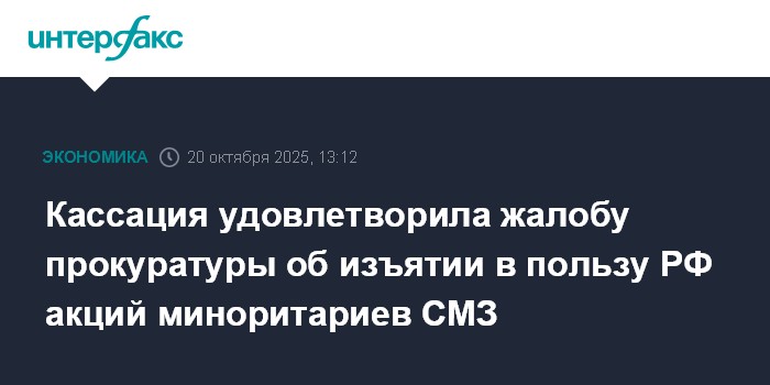 Кассация удовлетворила жалобу прокуратуры об изъятии в пользу РФ акций миноритариев СМЗ