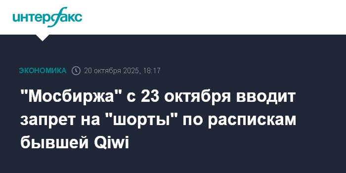 "Мосбиржа" с 23 октября вводит запрет на "шорты" по распискам бывшей Qiwi