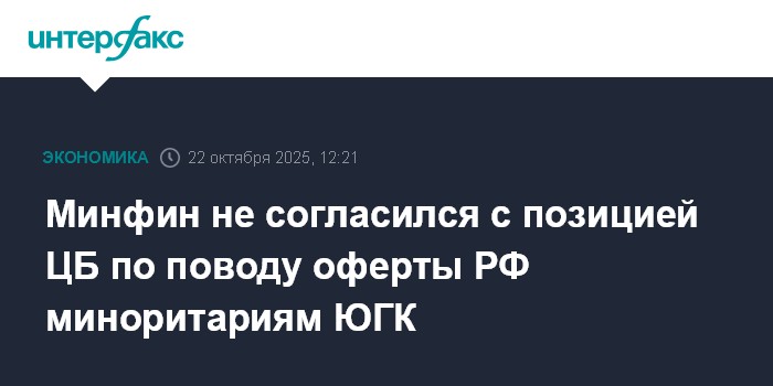 Минфин не согласился с позицией ЦБ по поводу оферты РФ миноритариям ЮГК