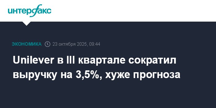 Unilever в III квартале сократил выручку на 3,5%, хуже прогноза