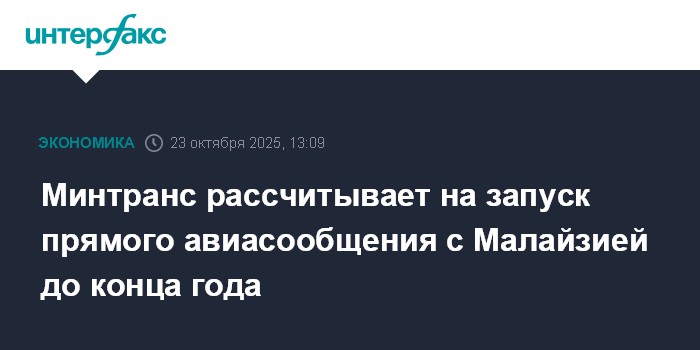 Москва. 23 октября. INTERFAX.RU - Запуск прямого авиасообщения между Россией и Малайзией запланирован на 2025 год, полеты будет выполнять авиакомпания Red Wings, сообщил в Совете Федерации замминистра транспорта Владимир Потешкин.