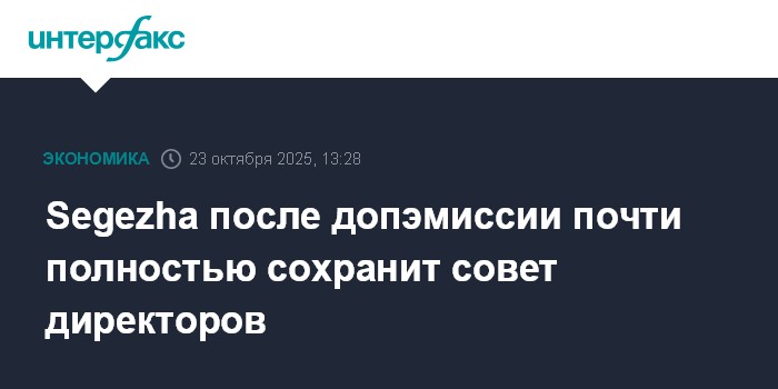 Москва. 23 октября. INTERFAX.RU - Подконтрольный АФК "Система" лесопромышленный холдинг Segezha Group, пул акционеров которого в 2025 году пополнился банками-кредиторами, намерен практически полностью сохранить состав совета директоров, следует из материалов к внеочередному собранию акционеров компании.