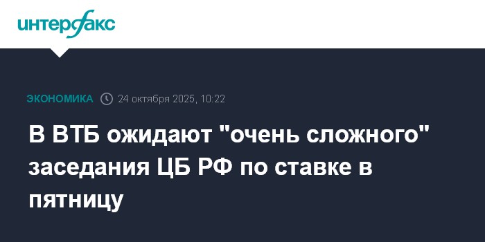 В ВТБ ожидают "очень сложного" заседания ЦБ РФ по ставке в пятницу