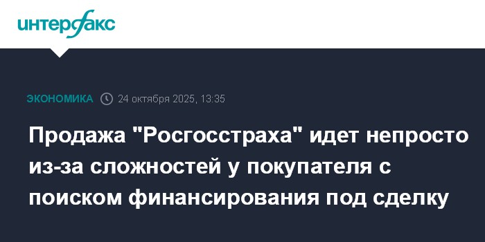 Продажа "Росгосстраха" идет непросто из-за сложностей у покупателя с поиском финансирования под сделку