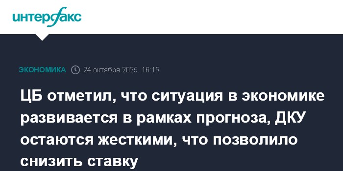 ЦБ отметил, что ситуация в экономике развивается в рамках прогноза, ДКУ остаются жесткими, что позволило снизить ставку