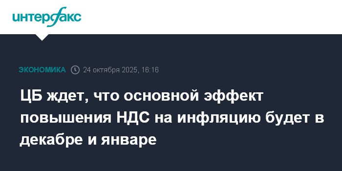 ЦБ ждет, что основной эффект повышения НДС на инфляцию будет в декабре и январе