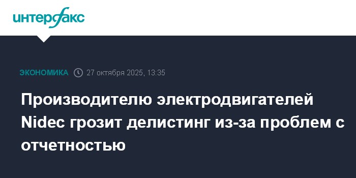 Москва. 27 октября. INTERFAX.RU - Японский производитель электродвигателей Nidec Corp., оказавшийся в кризисе из-за выявленных проблем с отчетностью, столкнулся с угрозой делистинга его акций с Токийской фондовой биржи (TSE).
