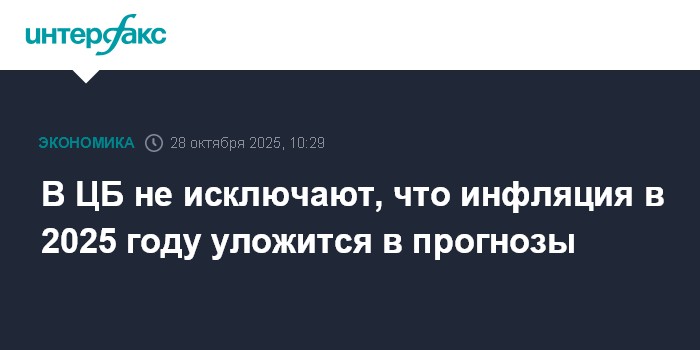 Москва. 28 октября. INTERFAX.RU - Инфляция в России в 2025 году может уложиться в официальные прогнозы, считает директор департамента денежно-кредитной политики Банка России Андрей Ганган.
