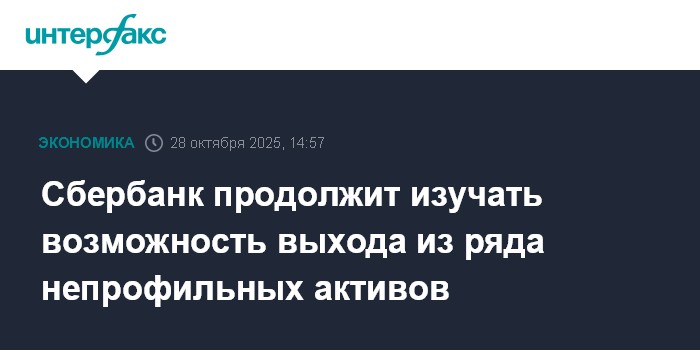 Москва. 28 октября. INTERFAX.RU - Сбербанк в 2026 году и далее продолжит изучать возможность выхода из ряда непрофильных активов, заявил зампред правления, финансовый директор банка Тарас Скворцов.