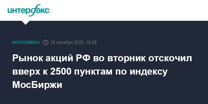 Рынок акций РФ во вторник отскочил вверх к 2500 пунктам по индексу МосБиржи