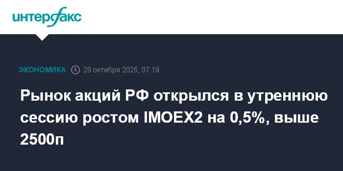 Рынок акций РФ открылся в утреннюю сессию ростом IMOEX2 на 0,5%, выше 2500п
