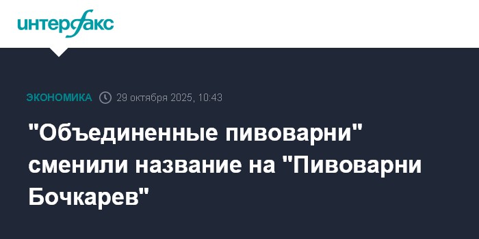 "Объединенные пивоварни" сменили название на "Пивоварни Бочкарев"