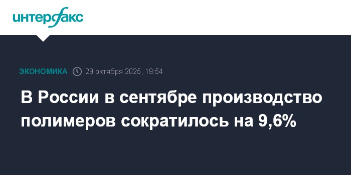 Москва. 29 октября. INTERFAX.RU - Производство полимеров в России в сентябре 2025 года составило 819 тысяч тонн, что на 9,6% меньше, чем в сентябре 2024 года, говорится в материалах Росстата.