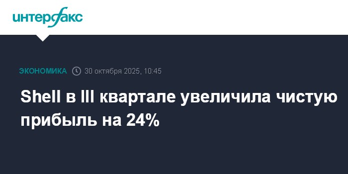 Москва. 30 октября. INTERFAX.RU - Британо-нидерландская нефтегазовая компания Shell в третьем квартале увеличила чистую прибыль на 24%, при этом скорректированный показатель превысил ожидания экспертов.