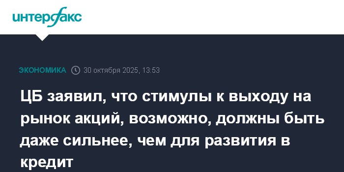 ЦБ заявил, что стимулы к выходу на рынок акций, возможно, должны быть даже сильнее, чем для развития в кредит